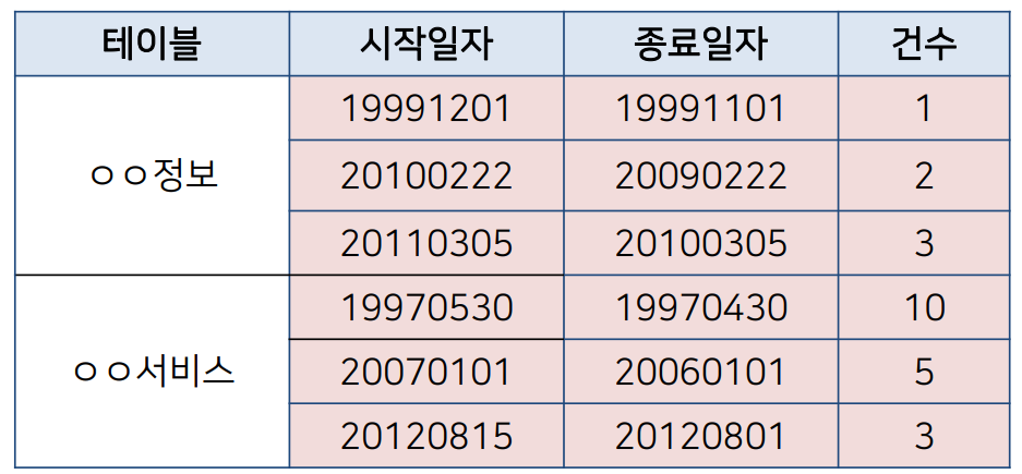 이번 포스팅에서는 프로젝트 수행 사례를 통해 데이터 품질 점검을 위한 비즈니스 규칙 유형에는 어떤 것이 있는지, 그리고 실제로 품질 진단 측정을 위한 SQL 쿼리는 어떻게 작성해야 하는지에 대해서 공유하고자 한다.
