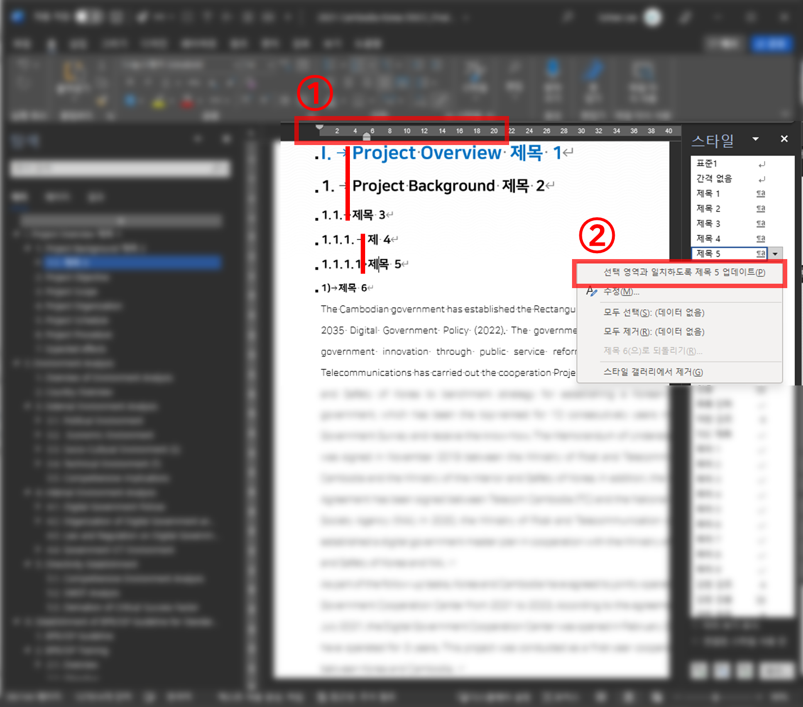 ① 홈 > 단락 > 다단계 목록 (alt > H > M)