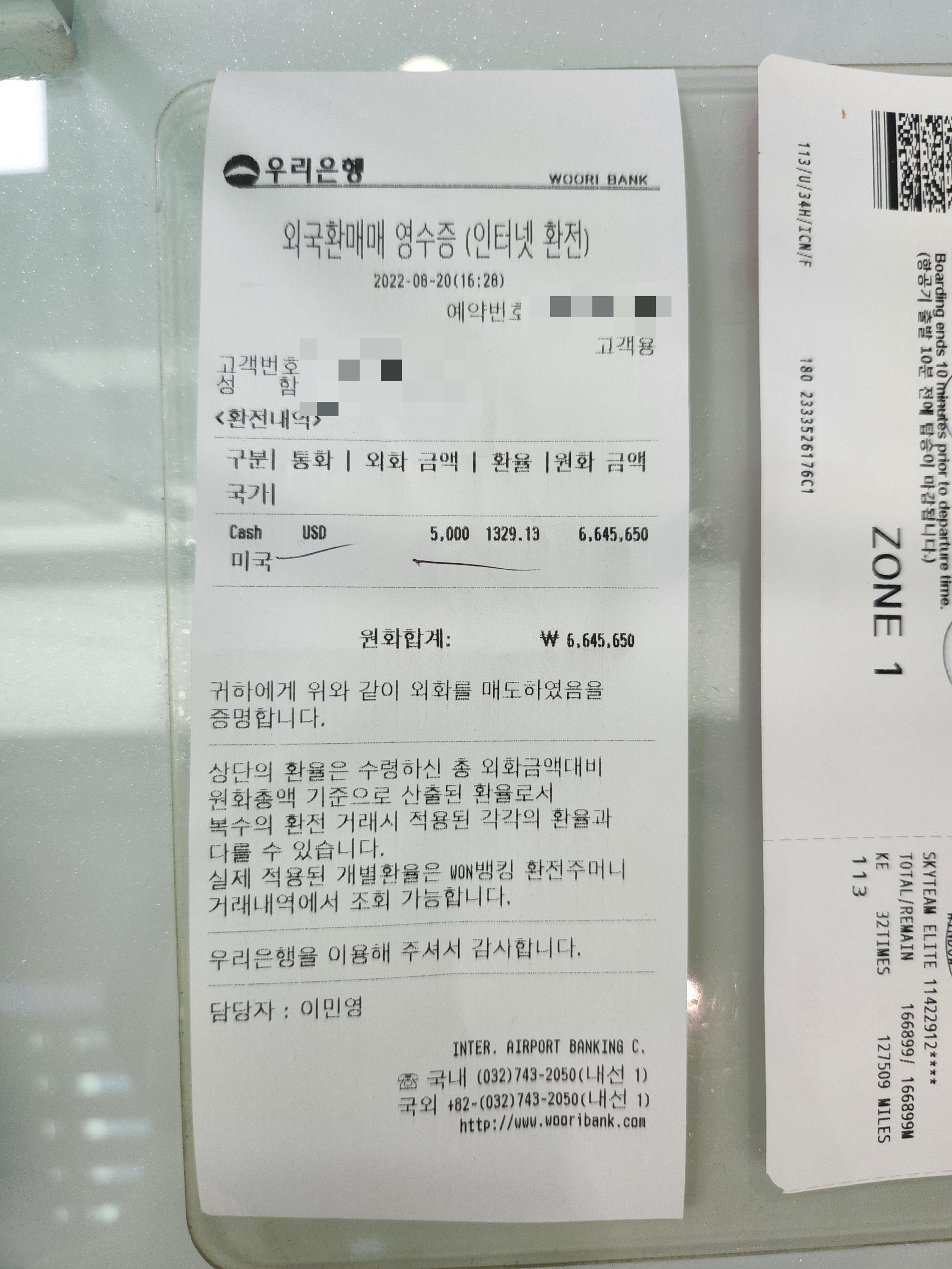 짐을 부치자마자 인터넷 환전으로 신청해둔 달러를 찾으러 우리은행 환전소를 찾았다.