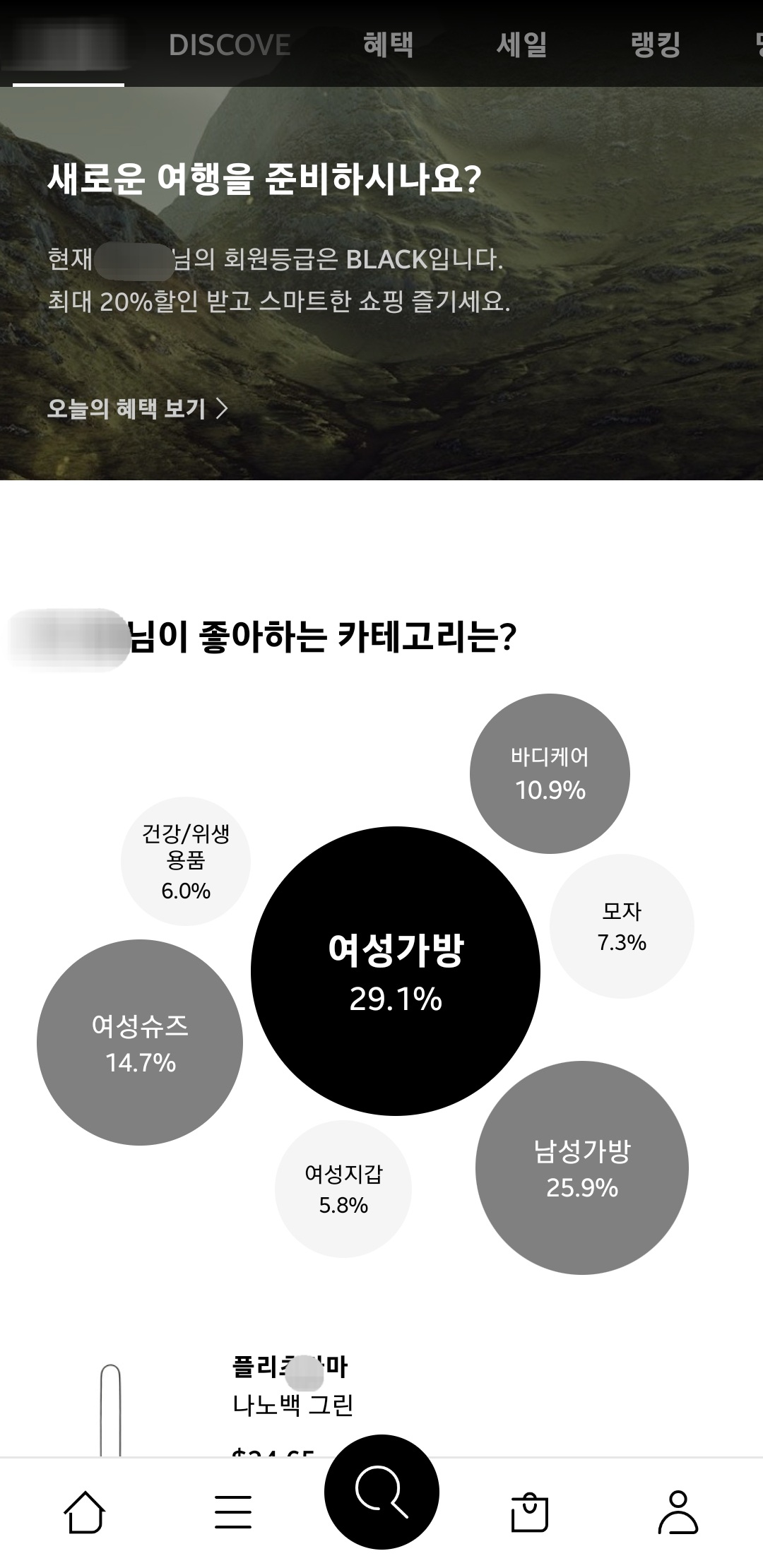 그 중 잠깐 소개하고 싶은 제품은 "연우 장어가죽 여성 지퍼돌이 메쉬 장지갑 Black" (면세가 55,000원)이다.